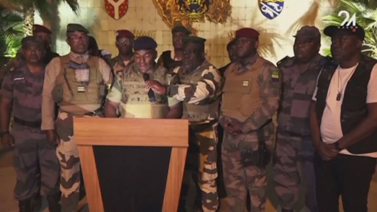 Dans un communiqué diffusé sur la chaîne de télévision Gabon 24, abritée au sein de la présidence, un groupe composé d’une douzaine de militaires et de policiers gabonais a déclaré mercredi l’annulation des élections, la dissolution de toutes les institutions de la République et la fin du régime en place.