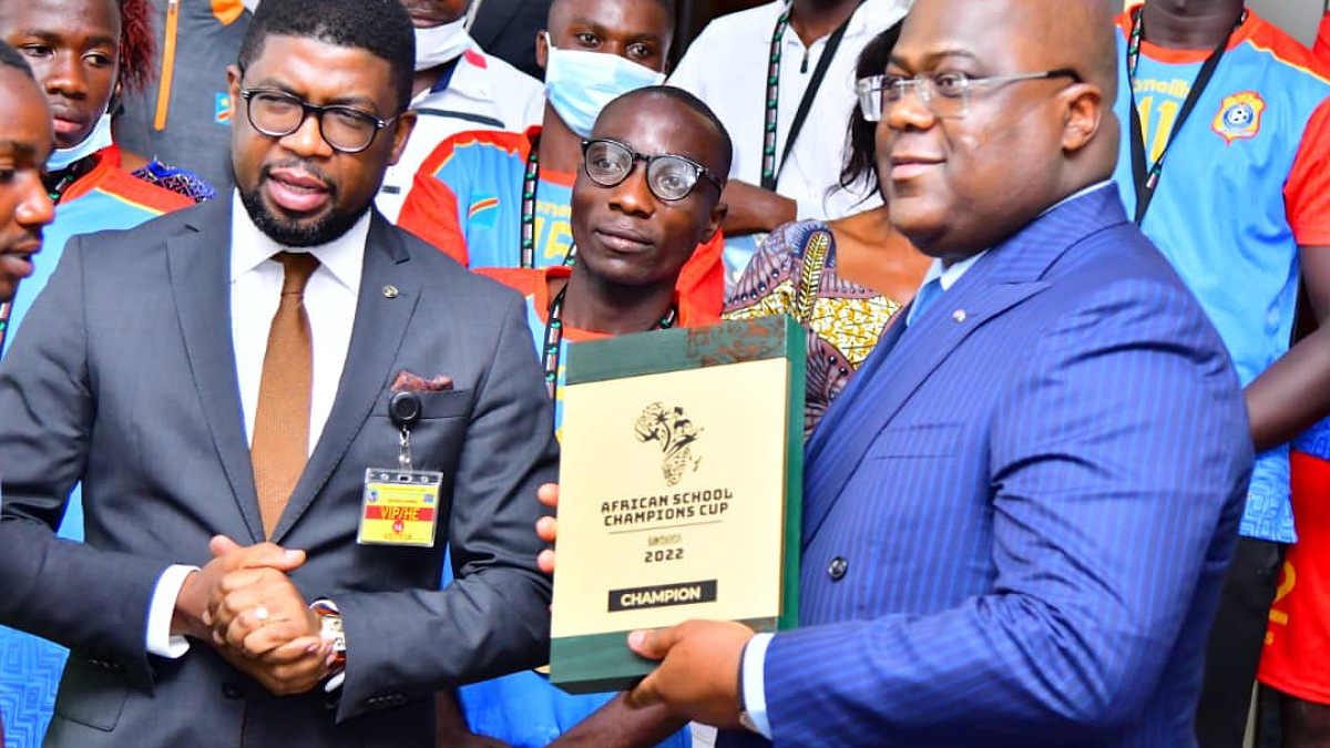 Le Président de la République démocratique du Congo Félix-Antoine Tshisekedi Tshilombo a reçu lundi 21 février 2022 les élèves lauréats du pays ayant pris part à la première édition de la Coupe d’Afrique de football des champions scolaires, à Kinshasa.