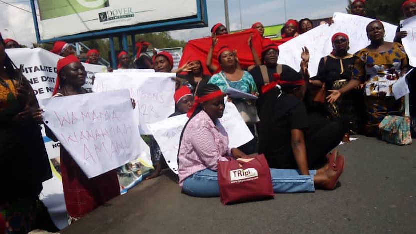 Habillées en Aube noir et foulard rouge en signe de guerrière, elles déplorent le fait que les femmes et jeunes filles sont plus victimes de l’insécurité dans l’Est de la RDC.