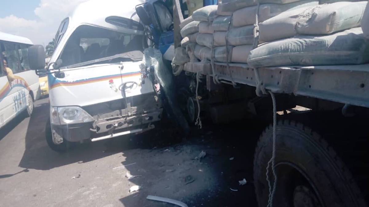 Selon les témoignages recueillis sur place, un bus communément appelé « Esprit de vie » est entré en collision avec un grand camion transportant des sacs des ciments.