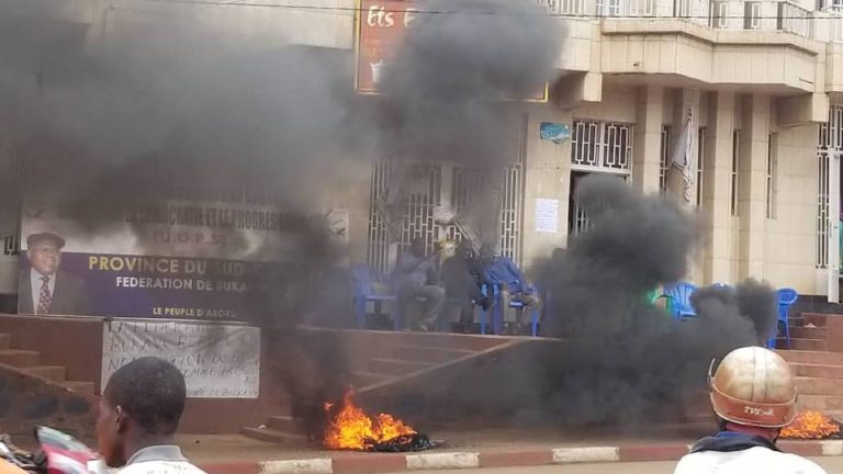 Plusieurs combattants et combattantes de l’Union pour la démocratie et le progrès social (UDPS) fédération de Bukavu manifestent ce samedi 22 février 2020 devant le siège de leur parti situé non loin de la cathédrale à Bukavu, chef-lieu de la…