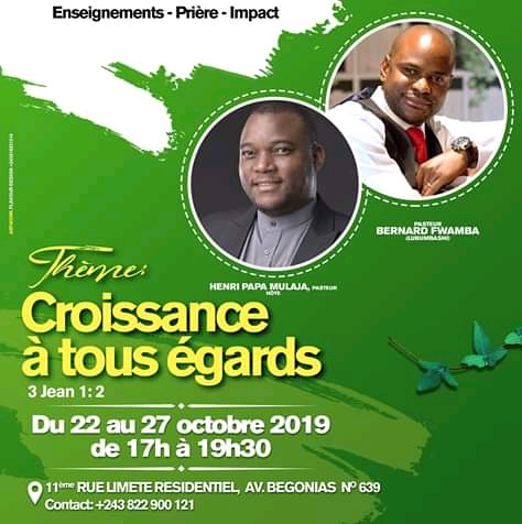 Le pasteur Henri Papa Mulaja nous donne un second rendez-vous du 22 au 27 octobre prochain pour participer à la deuxième édition de sa conférence annuelle intitulé « Verts pâturages », avec un invité qui vient de Lubumbashi lui c’est, le pasteur Bernard Fuamba.